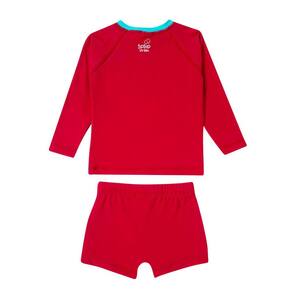 O Conjunto Praia Infantil Monstrinho Divertido Vermelho da Tip Top possui proteção solar FPS 50+ permanente, é super leve, confortável e seguro, além de lindo e estiloso. É o conjunto que o seu pimpolhinho precisa para curtir a praia ou a piscina com toda a proteção, sem perder a liberdade dos movimentos.