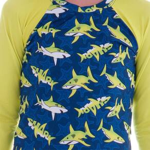 O Conjunto Shark Marinho é perfeito para aproveitar os momentos ao sol com toda a segurança, beleza e conforto. Possui Proteção Solar UV 50+ aplicada ao tecido. Esta tecnologia bloqueia a radiação ultravioleta, protegendo a pele dos danos causados pelo sol. Possui também proteção antimicrobiana e gerenciador de umidade. Sunga boxer com cordão de regulágem na cintura.