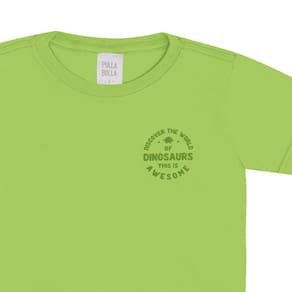 Uma nova aventura jurássica esta preste a começar! Aposto no conjunto mundo dos dinos para seu pequeno explorador brincar estando confortável e estiloso, conjunto composto pela camiseta meia malha na cor abacate com estampa puff de dinossauro com escrita "descubra o mundo dos dinos, isso é incrível" e a bermuda em moletom linho na cor natural sublimado com estampa de dinossauros.