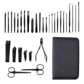 Material: Aço inoxidável Tamanho estojo : 17x11x2,5cm Cor: Preto Aplicação: Cuidados faciais, mãos e pés