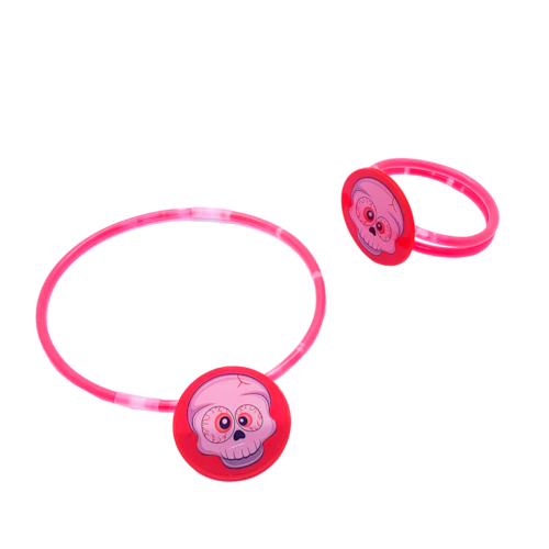 Prepare-se para uma festa cheia de estilo e diversão com o Conjunto de Pulseira e Colar de Caveira Neon - onde cada peça é um convite para o reino dos sustos!