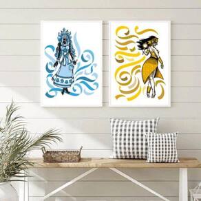 Este Conjunto de 2 Quadros Decorativos Iemanjá e Oxum é perfeito para dar um toque especial à decoração do seu quarto, sala, cozinha, escritório, área gourmet e muito mais. Com medidas de 33x24cm A4 , cada peça é feita em papel fotográfico brilhante de altíssima resolução, garantindo uma imagem nítida e de qualidade.