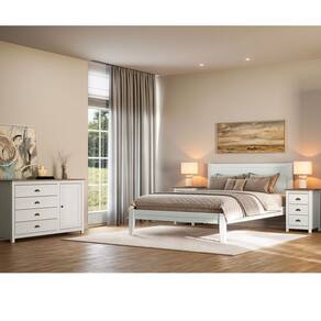Conjunto Quarto Topázio Branco: Cama Queen, Cômoda Sapateira e 2 Mesas de Cabeceiras Madeira Pinus