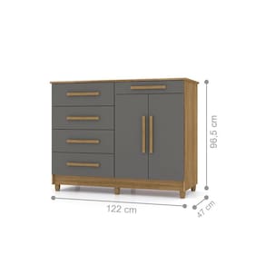 A Cômoda conta com cinco gavetas amplas para organizar todas suas roupas, possui uma prateleira móvel para organizar seus livros e caixas.