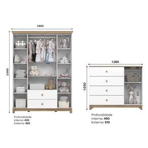 - Pés em MDF Revestidos. Acompanha Manual de Instalação: Sim Altura do Conjunto: 200 cm Ambiente Principal: Quarto de Bebê Certificado: 002 747/2024 Certificado INMETRO (código): 002 747/2024 codigo_ean: 7900288221872 Complexidade da Montagem: Alta: deve ser montado por um montador especializado Cor: Branco/Jequitibá Cor do Produto: Branco/Jequitibá Cor Interna: Trama Branco (Branco Acinzentado) Escala de Brilho: Fosco Largura do Conjunto: 150 cm Linha ou Coleção: Aconchego Manual de Montagem e Instalação: https://product-hub-prd.madeiramadeira.com.br/226590636/documents/0f0ea0bf-2225-4d33-bcd4-a8f56999e8ef3177419326617568399195563.pdf Marca: Henn Material da Gaveta: MDF/MDP Material da Porta: MDF/MDP Material da Prateleira: MDF/MDP Material do Estrado: MDF/MDP Material do Fundo: MDF/MDP Material Principal: MDF/MDP Medida de Cada Item: (Roupeiro AxLxP) 200 x 150 x 45cm ( Cômoda AxLxP) 103 x 126,5 X 51cm modular: Não Necessita Montagem: Sim Origem do Produto: Nacional Peso: Roupeiro; 88kg Cômoda; 49kg Peso de Cada Item: Roupeiro; 88kg Cômoda; 49kg Porta Janelada: Sim Possui Certificado: Sim Possui Espelhos: Não Possui Gavetas: Sim Possui Portas: Sim Possui Prateleiras: Sim Possui Rodízio: Não Profundidade do Conjunto: 45 cm Quantidade de Gavetas: 06 Quantidade de Portas: 05 Quantidade de Prateleiras: 10 Recomendações de Uso, Manutenção e Limpeza: Para limpeza de seu móvel, use uma flanela seca ou umedecida. Não utilize produtos químicos que possam danificar o produto. Sistema de Montagem: Parafusos e Cavilhas Tipo de Corrediça da Gaveta: Metálica Telescópica Tipo de Dobradiça/Corrediça da Porta: Metálica