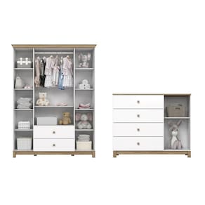 Esse Quarto de Bebê é composto pelo Guarda Roupas e Cômoda Aconchego.