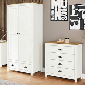 Conjunto Quarto Guarda-Roupa 2 Portas, Cômoda 4 Gavetas Topázio Branco/Freijó Madeira Pinus - Finestra