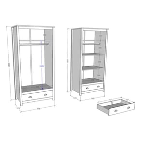 Conteúdo da Embalagem: 1 Guarda-Roupa, 1 Cômoda, manual de montagem e Kit Ferragem