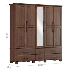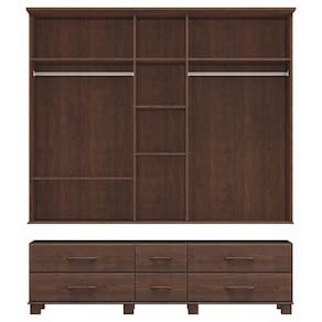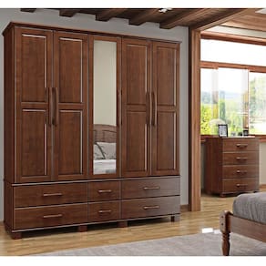Conjunto Quarto: Guarda-Roupa Casal 5 Portas 6 Gavetas, Cômoda 4 Gavetas Ouro Café Madeira Pinus - Finestra