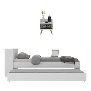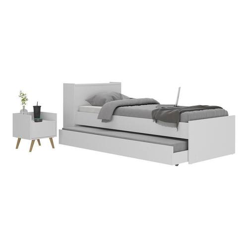 Renove seu ambiente com o Conjunto Quarto Bicama com Baú e Mesa de Cabeceira Retrô Multimóveis MP4120. A mesa de cabeceira é produzida em MDP com acabamento acetinado (cerca de 20% de brilho), que garante maior durabilidade e facilidade na limpeza, possui 1 gaveta com amplo espaço interno e corrediças metálicas que proporcionam mais leveza no manuseio. Os pés retrô, em polipropileno, dão um charme especial ao móvel deixando-o com um visual leve. Já a bicama solteiro para colchão 188x78cm é produzida em MDP com acabamento em pintura UV Premium de alta resistência. Possui um baú embutido com um amplo espaço para acomodar as roupas de cama e outros pertences, deixando o seu ambiente organizado. Bicama suporta até 100kg cama principal / 70kg cama auxiliar e NÃO acompanha colchão.
