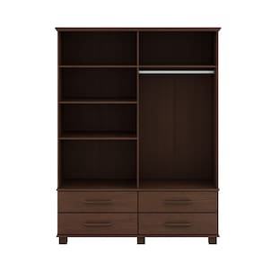 Conjunto Quarto Ouro: Guarda-Roupa 4 Portas, Cama Casal, Cômoda Sapateira e 2 Mesas Cabeceiras Café Madeira Pinus