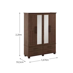 Conjunto Quarto Ouro: Guarda-Roupa 4 Portas, Cama Queen, Cômoda Sapateira e 2 Mesas Cabeceiras Café Madeira Pinus