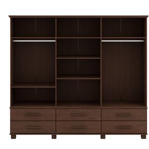 Conjunto Quarto Ouro: Guarda-Roupa 6 Portas, Cama Queen, Cômoda Sapateira e 2 Mesas Cabeceiras Café Madeira Pinus