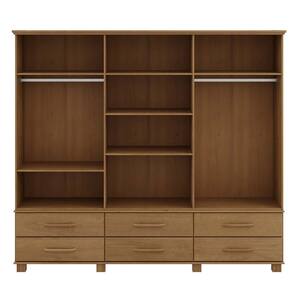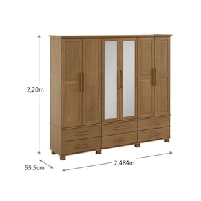 Conjunto Quarto Ouro: Guarda-Roupa 6 Portas, Cama Queen, Cômoda Sapateira e 2 Mesas Cabeceiras Freijó Madeira Pinus