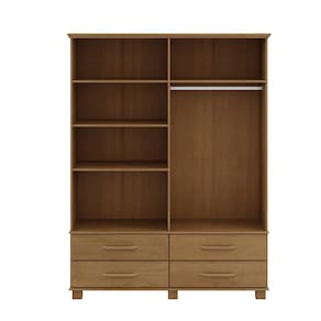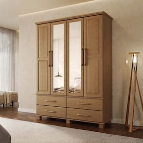 Conjunto Quarto Ouro: Guarda-Roupa 4 Portas, Cama Casal, Cômoda Sapateira e 2 Mesas Cabeceiras Freijó Madeira Pinus