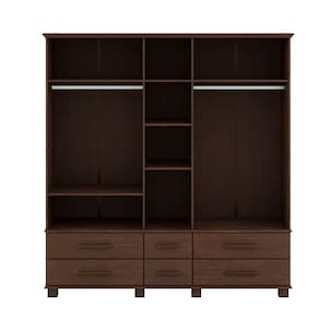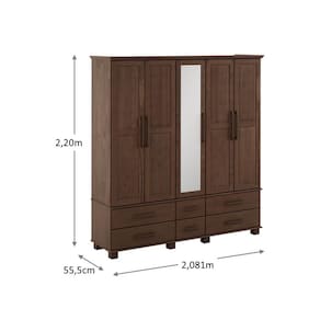 Conjunto Quarto Ouro: Guarda-Roupa 5 Portas, Cama Queen, Cômoda Sapateira e 2 Mesas Cabeceiras Café Madeira Pinus