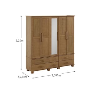 Conjunto Quarto Ouro: Guarda-Roupa 5 Portas, Cama Queen, Cômoda Sapateira e 2 Mesas Cabeceiras Café Madeira Pinus