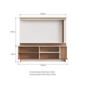 1x Painel para Tv até 65 Polegadas New York Freijó/Off White Largura: 180 cm Altura: 110 cm Peso: 35,9 kg Profundidade: 23 cm Necessita Montagem: Sim
