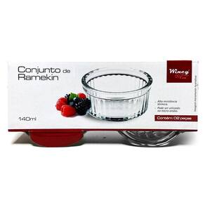 Conjunto 4 Ramequins Wincy 140mlO ramekin é produzido em vidro temperado com design que esbanja charme.Super prático, pode servir e auxiliar no preparo de saladas, molhos, petiscos e diversas refeições do dia-a-dia ou, ainda, ser usado durante churrascos e confraternizações na área externa.- Alta resistência- Pode ser utilizado no micro-ondas- Forno: +300C e Frezzer : - 40CESPECIFICAÇÕES:- Composição: Vidro Temperado- Tamanho de cada produto: : 8,5 cm x 4,5 cm- Tamanho da embalagem: 28cm x 8cm- Capacidade: 140ml- Peso: 628g- Marca: Wincy Casa- Origem: ChinaITENS INCLUSOS:- 02 Kits de Ramekin, cada kit contém 2 peças.CÓD. REF.:- VDA13007