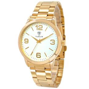 Marca: Tuguir Categoria: Analógico Analógico: Sim (1 Horário) Ponteiros Fluorescentes: Não Digital: Não Calendário: Não Despertador: Não Mostra o Dia da Semana: Não Mostra o Dia do Mês: Não Cronômetro: Não Contador Regressivo: Não Luz: Não Resistente à Água: 3 ATM - Respingos: Sim - Chuva: Sim - Lavar Carro: Sim - Lavar Louça: Sim - Natação: Não - Mergulho: Não Característica do Vidro: Cristal Mineral Tipo de Fecho: Dobrável com Botão Cor da Caixa: Dourada Material da Caixa: Metal Banho IP Formato da Caixa: Redondo Diâmetro da Caixa: 40,00 (mm) Espessura da Caixa: 8,40 (mm) Cor da Pulseira: Dourada Material da Pulseira: Aço Largura da Pulseira: 17,80 (mm) Comprimento Máximo da Pulseira: 220,00 (mm) Alimentação: Bateria Interna Peso Líquido: 0,080 Kg Modelo: TG117 Cor Predominante: Dourado Garantia: 12 Meses