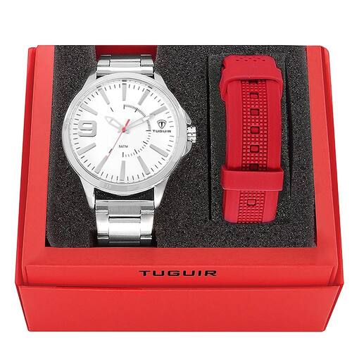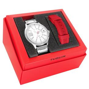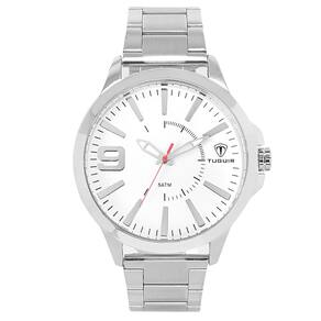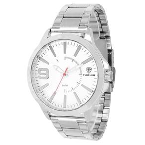 Marca: Tuguir Categoria: Analógico Analógico: Sim (1 Horário) Ponteiros Fluorescentes: Sim Digital: Não Calendário: Não Despertador: Não Mostra o Dia da Semana: Não Mostra o Dia do Mês: Não Cronômetro: Não Contador Regressivo: Não Luz: Não Resistente à Água: 5 ATM - Respingos: Sim - Chuva: Sim - Lavar Carro: Sim - Lavar Louça: Sim - Natação: Sim - Mergulho: Não Característica do Vidro: Cristal Mineral Tipo de Fecho: Dobrável com Botão Cor da Caixa: Prata Material da Caixa: Metal Banho IP Formato da Caixa: Redondo Diâmetro da Caixa: 47,00 (mm) Espessura da Caixa: 10,20 (mm) Cor da Pulseira: Prata Material da Pulseira: Aço Largura da Pulseira: 19,80 (mm) Comprimento Máximo da Pulseira: 230,00 (mm) Alimentação: Bateria Interna Peso Líquido: 0,105 Kg Modelo: TG100 Cor Predominante: Prata Garantia: 12 Meses