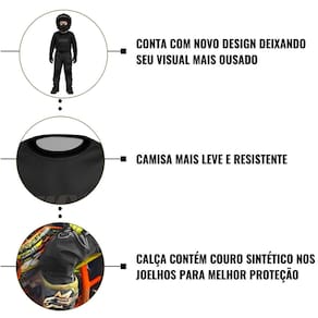 A camisa leve e resistente que respira, evitando superaquecimento, enquanto a calça que possui couro sintético nos joelhos oferece proteção reforçada sem perder a flexibilidade.