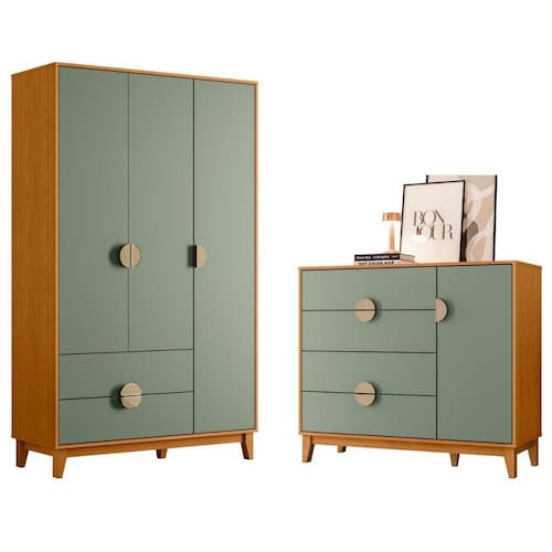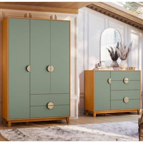 Esse Conjunto de Guarda Roupa e Cômoda é perfeito para você que procura sofisticação e praticidade na hora da organização