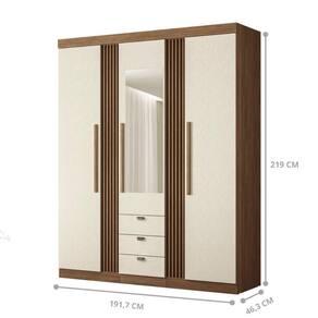 A comoda possui portas, gavetas e cabideiro, garantindo um amplo espaço para armazenar desde sapatos e roupas a todos os tipos de itens.