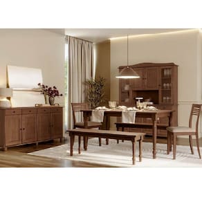 Conteúdo da Embalagem: 1 Mesa, 2 Bancos, 2 Cadeiras, 1 Cristaleira, 1 Balcão, Kits Ferragens e Manuais de Montagem