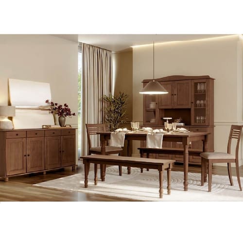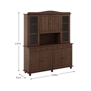 Conjunto Rubi: Cristaleira, Balcão 4 Portas, Mesa 2 Bancos 2 Cadeiras Café Madeira Pinus - Finestra