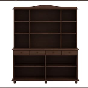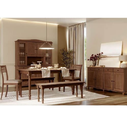 Conjunto Rubi: Cristaleira, Balcão 4 Portas, Mesa 2 Bancos 2 Cadeiras Madeira Pinus Café - Finestra