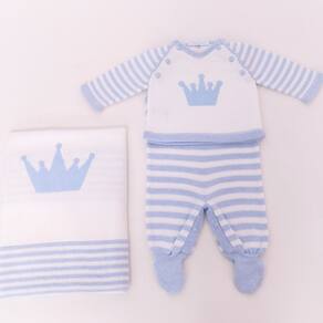 Conjunto Bebê Manta e Salopete (Macacão + Casaco) Contém:1 Manta1 Conjunto Salopete (Macacão sem mangas + Casaco) Tamanhos: RN e P
