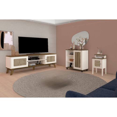Que tal valorizar a decoração de sua casa com mais estilo? Inspiração e aconchego que todo lar deve ter.Com o Conjunto Charlotte na cor PINHO c/ OFF WHITE o ambiente fica mais moderno e sofisticado. Possui 1 Buffet, 1 Mesa de Apoio e 1 Rack. Com o Buffet Charlotte o ambiente fica mais moderno e sofisticado. Possui 1 porta de abrir e vários nichos. Com pintura UV texturizada, sua manutenção fica muito mais fácil. Além disso, o móvel possui tres meses de garantia. A responsabilidade com meio ambiente também é uma das bandeiras da Artely Móveis. Criando um composição elegante o Rack Charlotte deixa a sua sala de TV moderna e agradável. O Rack possui pés de MDF 25mm, nichos e 2 portas de abrir com dobradiça de metal. Com pintura UV texturizada, sua manutenção fica muito mais fácil. Além disso, o móvel possui tres meses de garantia. A responsabilidade com meio ambiente também é uma das bandeiras da Artely Móveis. Um toque especial de modernidade é o que a Mesa de Apoio Charlotte oferece para seu lar. Ideal para deixar o ambiente mais bonito e moderno valorizando a decoração. Possui porta de abrir com espaço interno. Com pintura UV texturizada, sua manutenção fica muito mais fácil. Além disso, o móvel possui tres meses de garantia. A responsabilidade com meio ambiente também é uma das bandeiras da Artely Móveis. A MESA DE CENTRO NÃO ESTÁ INCLUSA NA COMPRA!!!