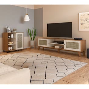 Crie uma sala de estar completa e harmoniosa com este elegante conjunto Artely! Com peças sofisticadas e funcionais, este conjunto oferece o equilíbrio perfeito entre organização, beleza e praticidade. Ideal para quem busca um ambiente acolhedor e moderno, ele transforma sua sala em um espaço mais agradável e convidativo. As peças combinam entre si com design, cores e acabamentos coordenados, criando uma composição visualmente equilibrada e charmosa. O acabamento é resistente e agradável ao toque, garantindo durabilidade e elegância. Feito com materiais de alta qualidade, este conjunto é a escolha ideal para quem deseja unir estilo, conforto e funcionalidade em um único ambiente. 1 unidade RACK ARTELY CHARLOTTE - CINAMOMO C/OFF WHITE (4675) 1 unidade BUFFET ARTELY CHARLOTTE - CINAMOMO C/OFF WHITE (4676)
