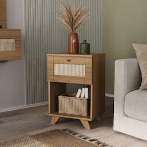 "Eleve o visual da sua sala com o encantador Painel para TV Trama: uma solução completa para modernizar seu ambiente. Suporte para TV incluso: Prático, seguro e funcional, o modelo do suporte é universal e serve para qualquer modelo de TV. Detalhes em impressão palha: Acabamento refinado que adiciona elegância e realça a estética do móvel. Organização inteligente: Duas gavetas oferecem espaço ideal para armazenar controles e itens pequenos, mantendo a sala organizada e livre de bagunça. Prateleira superior: Perfeita para expor objetos decorativos, garantindo personalidade ao ambiente. Design moderno e elegante: No estilo Boho Chic, o móvel é leve e harmoniza perfeitamente com diversos ambientes. A combinação perfeita entre organização e beleza para o seu espaço! Acabamento: Pintura UV Altura do Conjunto: 135 cm Ambiente: null Ambiente Principal: Sala de Estar Cor: Carvalho Informação Complementar: 1x Mesa de Apoio 1 Gaveta com Nicho Palha Carvalho Largura: 43 Altura: 64.5 Peso: 11 kg Profundidade: 35.5 Necessita Montagem: Sim