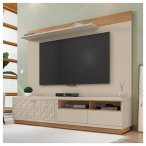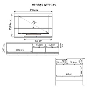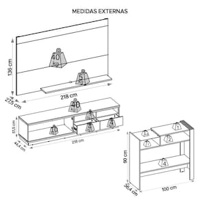 O Conjunto Renda è ideal para sua sala de estar, deixando o ambiente mais moderno e elegante. O Kit renda é composto por uma Bancada Rack Renda, Painel e um Aparador, ambos são feitos em MDP e HDF contém maior resistência e durabilidade ao móvel. Dimensões da Bancada:Altura: 51,5 cmLargura: 218 cmProfundidade: 44,4 cmPeso: 67,6 kgDimensões do Painel:Altura: 136 cmLargura: 218 cmProfundidade: 27,5 cmPeso: 41 kgDimensões do Aparador:Altura: 90 cmLargura: 100 cmProfundidade: 36,4 cmPeso: 17,11kgESPECIFICAÇÕES TÉCNICASBancada Rack Renda:Possui 2 NichosPuxadores em AlumínioSuporta TV's até 75 PolegadasPossui 2 Portas com design 3D a laserPossui 2 Gavetas com corrediças telescópicasPainel Malha:Possui 1 Prateleira Ampla de 158 cmSuporta Televisores Até 75 PolegadasPrateleira pode ser montada na parte superior ou inferiorAparador MênfisPossui 1 NichoPossui Design ExclusivoPossui 2 Prateleiras sendo 1 em vidroPeso Suportado Bancada:Tampo 40kgPortas 5kg (cada)Nichos 2kg (cada)Gavetas 4kg (cada)Peso Suportado Painel:Painel 40kgPrateleira 5kgPeso Suportado Aparador:Nicho 2kgTampo 1kgPrateleira 4kgPrateleira (Vidro) 0,5kgAcompanha manual de montagemContém furação para passagem de fiosTonalidade do Produto: Off White / BuritiEstrutura em MDP de 15mm e 40mm de espessura. HDF de 3mm de espessura.Garantia 90 dias contra defeito de fabricaçãoEste conjunto chegará em sua casa separado em 5 Volumes(1º Volume)Altura: 9 cmLargura: 45 cmComprimento: 223 cm(2º Volume)Altura: 7 cmLargura: 45 cmComprimento: 224 cm(3º Volume)Altura: 8 cmLargura: 164 cmComprimento: 25 cm(4º Volume)Altura: 4 cmLargura: 224 cmComprimento: 69 cm(5º Volume)Altura: 11 cmLargura: 105 cmComprimento: 38 cmRecomendações de limpeza:- Limpar com pano macio, seco ou úmido, sem uso de produtos abrasivos. Pois, podem trazer danos ao produto.Sobre a entrega:- As transportadoras contratadas, não realizam entregas em apartamentos. Realizando assim a entrega na portaria do prédio.*Produto segue desmontado, montagem por conta do comprador.*Imagens do produto são meramente ilustrativas.