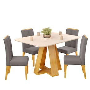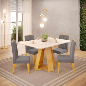 Conjunto Sala de Jantar 4 Cadeiras Tampo Chanfrado Retangular 120cm com Vidro Kiara Cedro Off White Yasmin Veludo Lunar - DJ Móveis