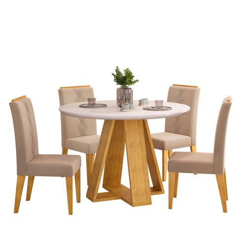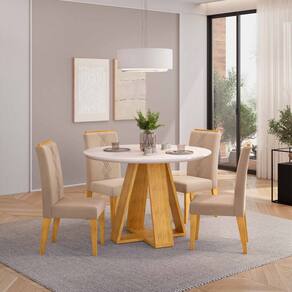 Conjunto Sala de Jantar 4 Cadeiras Tampo Redondo com Vidro Kiara Cedro Off White Yasmin Veludo Kraft - DJ Móveis