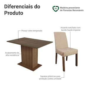 O Conjunto Zion traz o aconchego do tom amadeirado Rustic com as cadeiras em tecido Imperial, um tom bege claro que ilumina o ambiente.