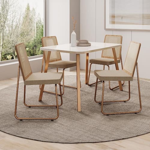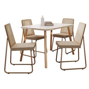 O Conjunto Sala de Jantar 4 Cadeiras Dácia Carraro Gelo com Off White transforma seu espaço com sofisticação. A mesa de jantar 1602 para 4 lugares destaca-se pelo tampo de 25mm + vidro de 4mm na cor gelo, que combina perfeitamente com acabamentos elegantes e clean. Ideal para quem busca praticidade e estilo, é fácil de limpar e traz um toque de modernidade ao ambiente. A cadeira Wood 1751, com seu design atraente e único, une tubos de aço, painel MDP e estofado em tela sintética, oferecendo uma mistura de rusticidade e suavidade. Além de resistente e confortável, o conjunto de sala de jantar Dácia proporciona uma harmonia fantástica ao seu espaço, equilibrando durabilidade e elegância com estilo.