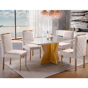 Conjunto Sala de Jantar 4 Lugares Moscou Madeira Maciça e Tampo Com Vidro