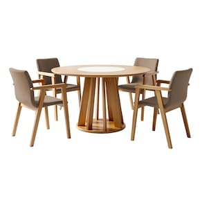 Conjunto Sala de Jantar 4 Lugares Redonda com Prato Giratório Mesa e Cadeira Flora Cinamomo/Off White/Bege - Marrom