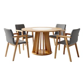 Se você precisa de um conjunto de mesa com 4 cadeiras, acabou de achar a sua escolha certa. A mesa redonda possui tampo de 25 mm, com bordas chanfradas e pintura UV, garantindo acabamento sofisticado, maior durabilidade e fácil limpeza no dia a dia. O prato giratório traz mais praticidade às refeições, facilitando o acesso a pratos e travessas e deixando os momentos à mesa ainda mais confortáveis. As cadeiras com base em madeira maciça oferecem resistência, além de um design elegante que combina com diferentes estilos de sala de jantar. Um conjunto compacto, funcional e cheio de estilo, ideal para reunir a família e aproveitar cada refeição com mais conforto.