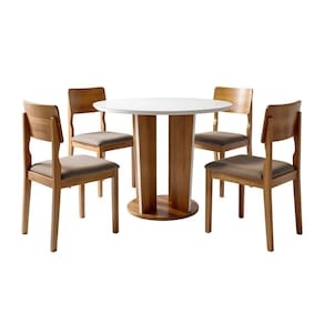 Conjunto Sala de Jantar 4 Lugares Redonda Tampo de Vidro 135cm Mesa e Cadeira Ana Cinamomo/Off White/Bege - Marrom
