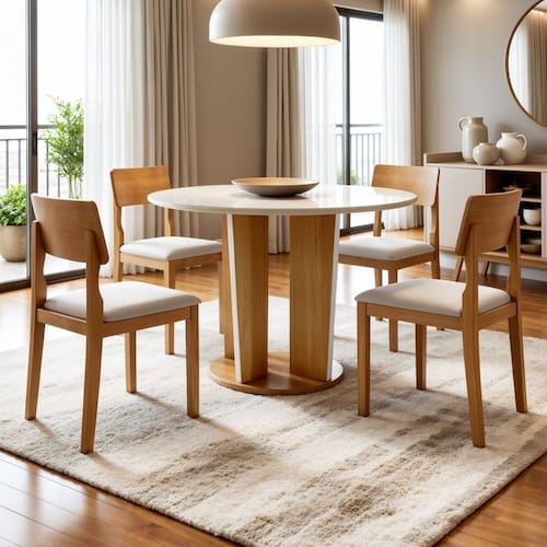 Pensado para transformar sua sala de jantar em um espaço mais elegante e acolhedor, nosso conjunto de mesa com 4 cadeiras une design e conforto para o dia a dia.