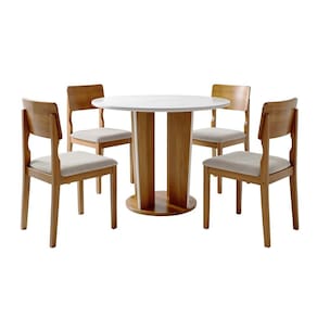 Conjunto Sala de Jantar 4 Lugares Redonda Tampo de Vidro 135cm Mesa e Cadeira Ana Cinamomo/Off White/Palha - Marrom