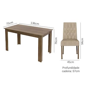 As cadeiras são estofadas com tecido Imperial, um tom moderno e versátil que combina diferentes estilos de decoração e fica ainda mais harmonioso com o tom amadeirado rustic da mesa.