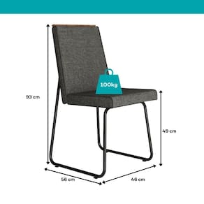 Especificações da Cadeira: Medidas totais: Largura: 46 cm | Altura: 93 cm | Profundidade: 56 cm Peso total (06 unidades): 42,9 Kg