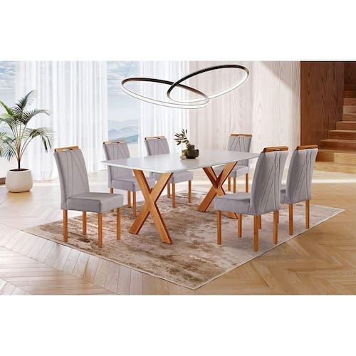 Conjunto Sala De Jantar 6 Lug Mesa E Cadeira Moveis Mundial /off White/cinza Conjunto Sala de Jantar 6 Lugares Lorena Mesa e Cadeiras Madeira Macica - Moveis Mix Exclusividade de Fabrica Mesa Com 6 Cadeiras - Moveis Mix.