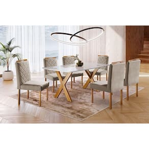 Conjunto Sala de Jantar 6 Lugares Espanha Mesa e Cadeiras Linho Areia - Moveis Mix